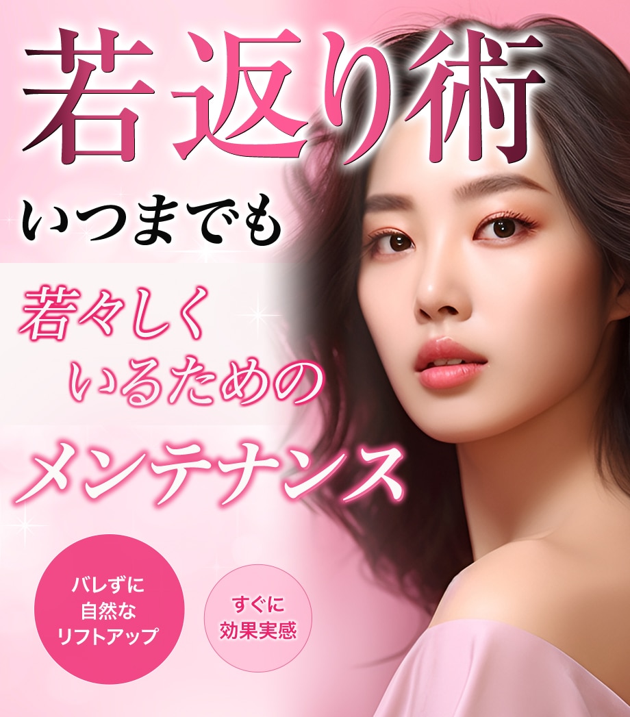 これによりたるみやほうれい線、マリオネットラインや、フェイスラインのもたつきを改善します。糸の挿入による刺激でコラーゲンが増生され、肌のハリツヤをアップさせる美肌効果も! また、糸リフトを定期的に受けることで、重力からの影響を防ぎ、たるみなどの進行予防にもなります。