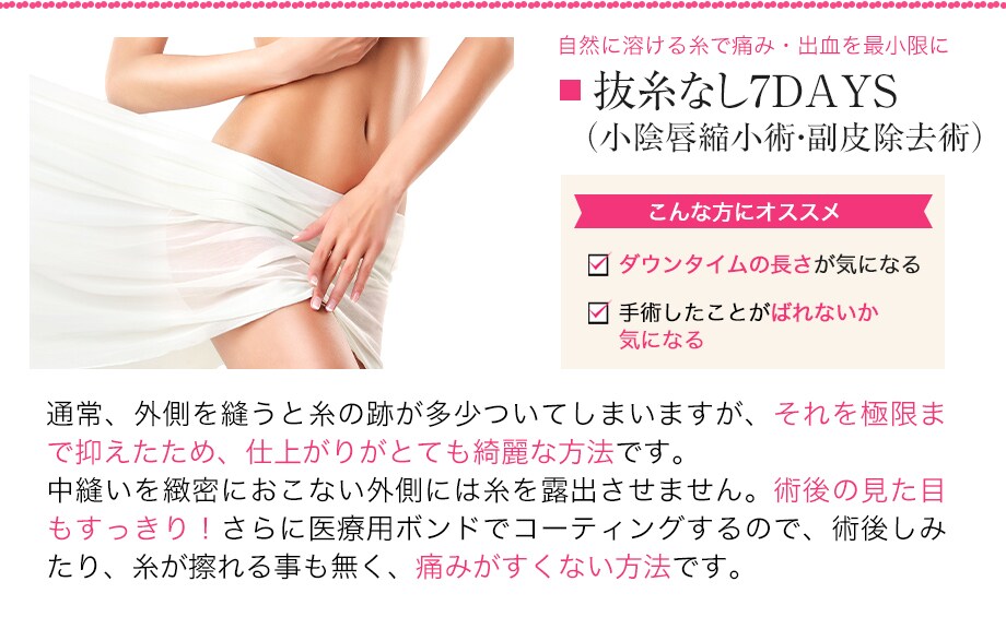 | 抜糸なし7DAYS(小陰唇縮小)(片側) | 115,500円 |
