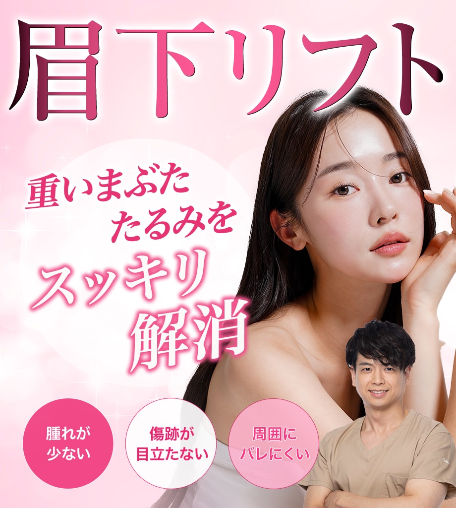 眉下リフト(眉下切開)は、眉下のたるんだ皮膚を切開して引き上げる、たるみ改善の施術です。