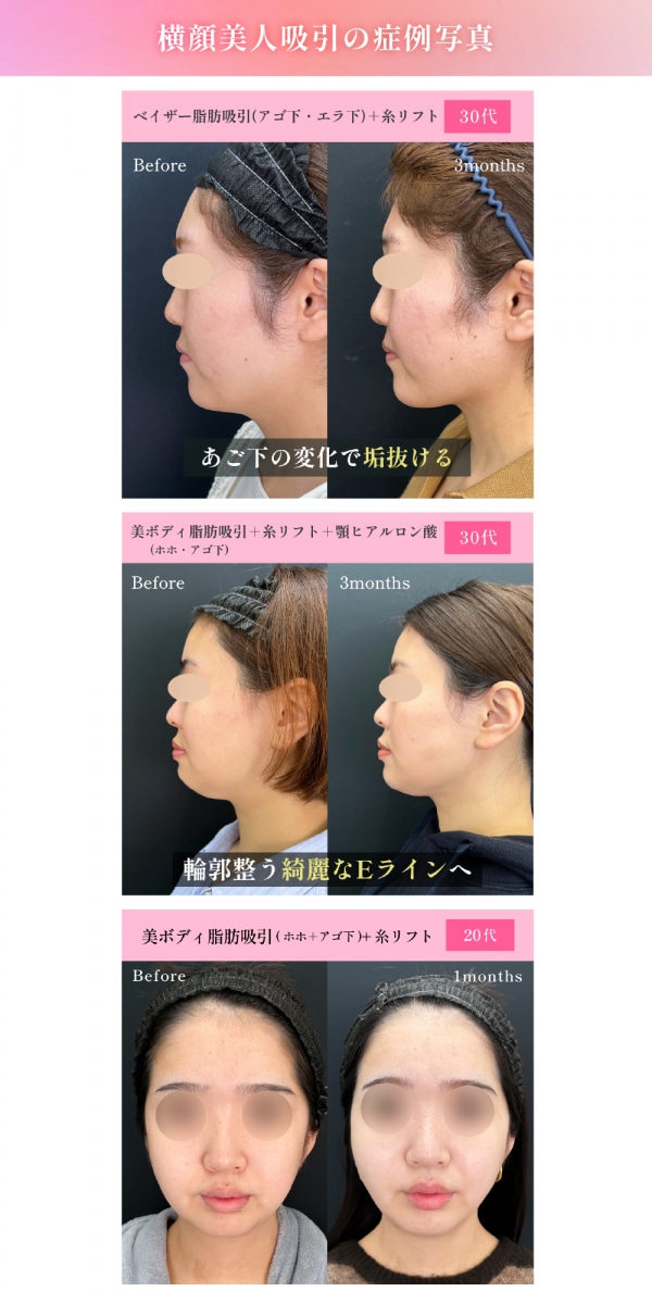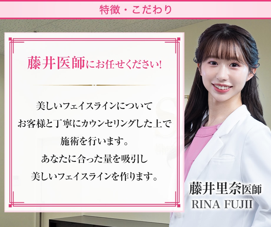 お客様のご希望に合わせた脂肪吸引法と、あご下に最適な糸リフトを組み合わせることで、たるみやすくなる吸引後も直後からピタッとシャープなラインを長く保たせます!まずはりなてぃ先生にご相談ください