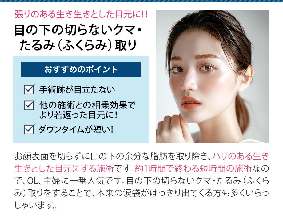 老けみえの原因「目の下のクマ・たるみ」を切らずに解消して、メイクの映える若々しい目元に!