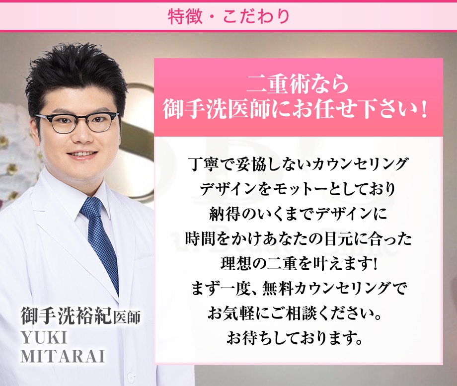 関東・南東北で執刀実績多数!Teen二重術SBC内執刀数関東No.1(2024年上期、東京除く)と10代の皆様からの人気急上昇中の二重埋没エキスパートです!優しく丁寧なカウンセリング&手術であなたの理想の二重を叶えます!