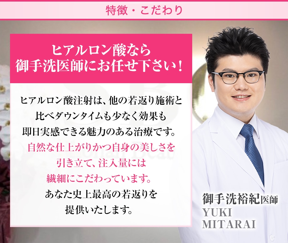 御手洗医師があなたのお悩みや理想、お顔のバランスに合わせてヒアルロン酸をご提案します!