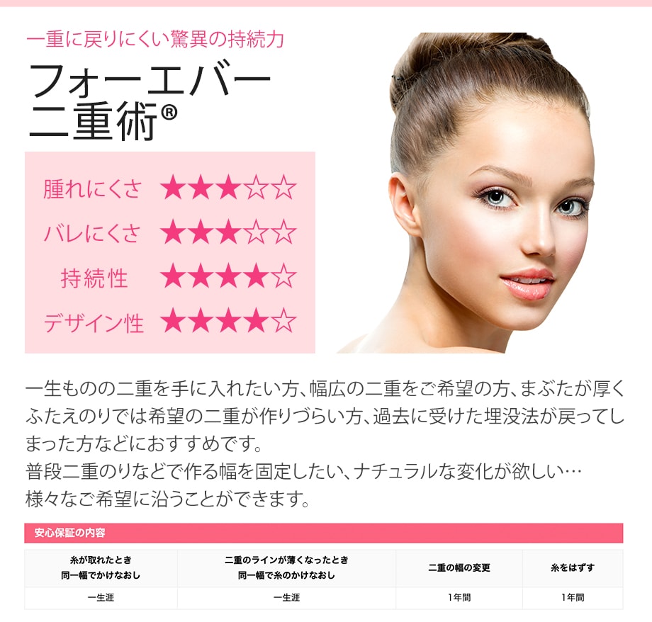 | フォーエバー二重術(R)(両目(笑気麻酔込)) | 98,000円 |
