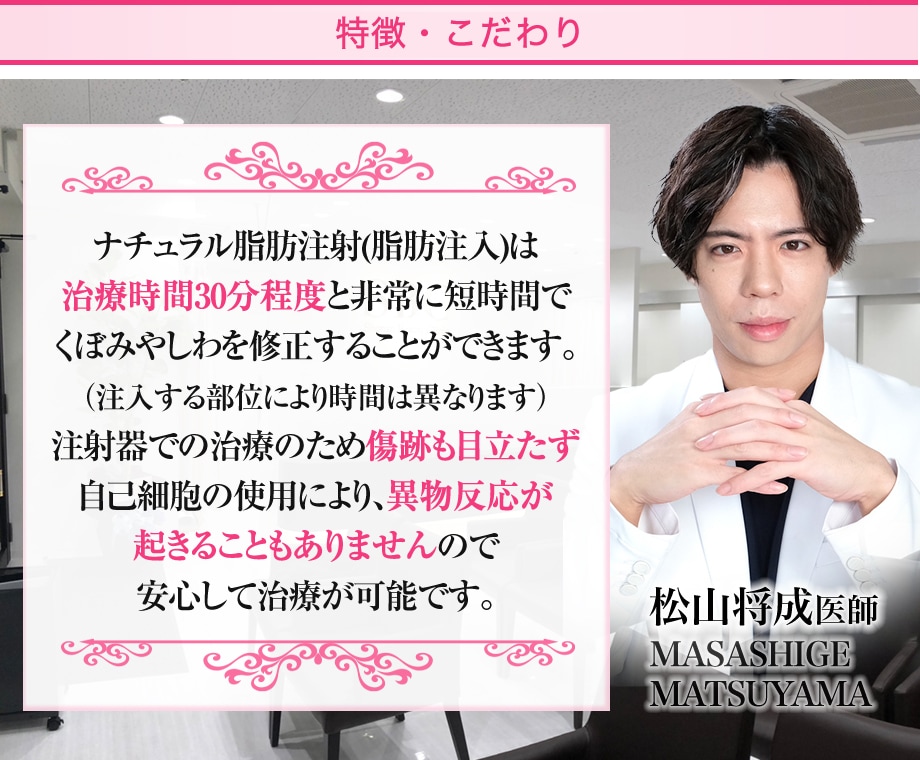 松山医師による、ナチュラル脂肪注入のモニターを募集中です。