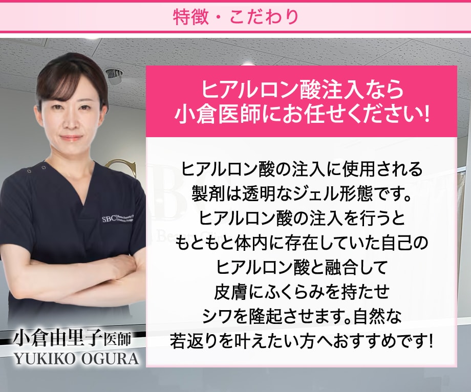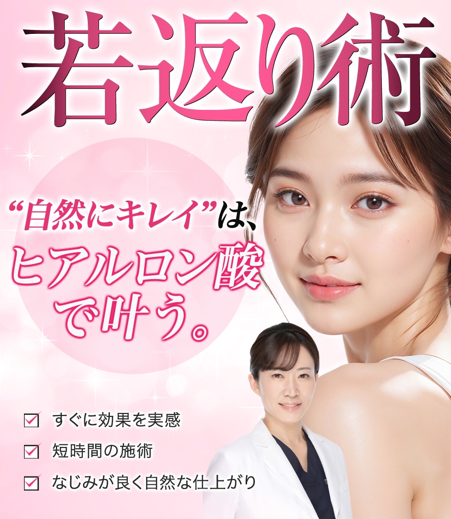 ヒアルロン酸注射は元々体内にある成分のヒアルロン酸を注入し、皮膚を膨らませ、ほうれい線やしわを改善する施術です。