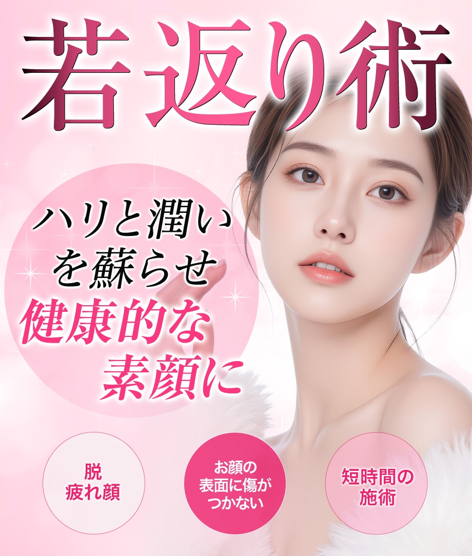 ナチュラル脂肪注射コンデンスリッチは、ご自身の脂肪を使って気になるくぼみやボリューム不足を解消する若返り治療です。ヒアルロン酸などの人工物を使わず、自分の脂肪を使用するため、馴染みやすく自然な仕上がりになるのが特徴です。特に、ほうれい線やこめかみ、目の下のくぼみなど、年齢とともに現れる“痩せ感”を補うことで、お顔全体にハリと若々しさを取り戻します。「自然に見えるけれど、しっかり変わる」ナチュラル脂肪注射コンデンスリッチは、ミドル世代の方にこそ選ばれている人気の若返り施術です。