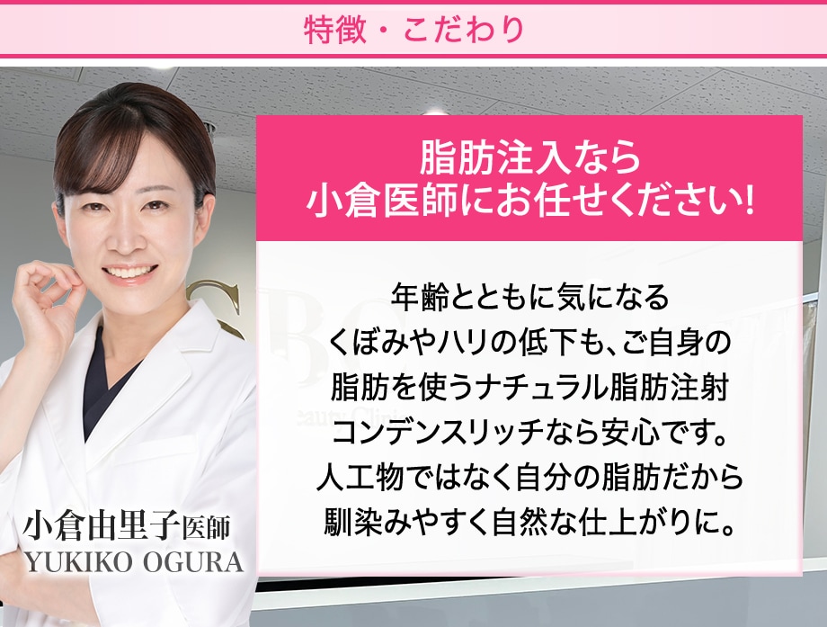 小倉医師によるナチュラル脂肪注射コンデンスリッチのモニター様を絶賛募集中です。