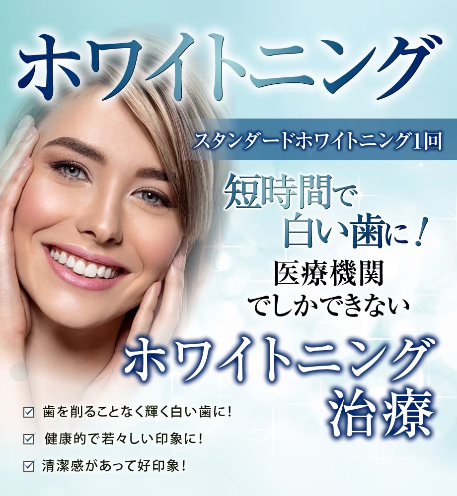 ホワイトニングとは、歯を削ることなく、輝く白い歯がよみがえる、医療機関でしかできない治療法です。