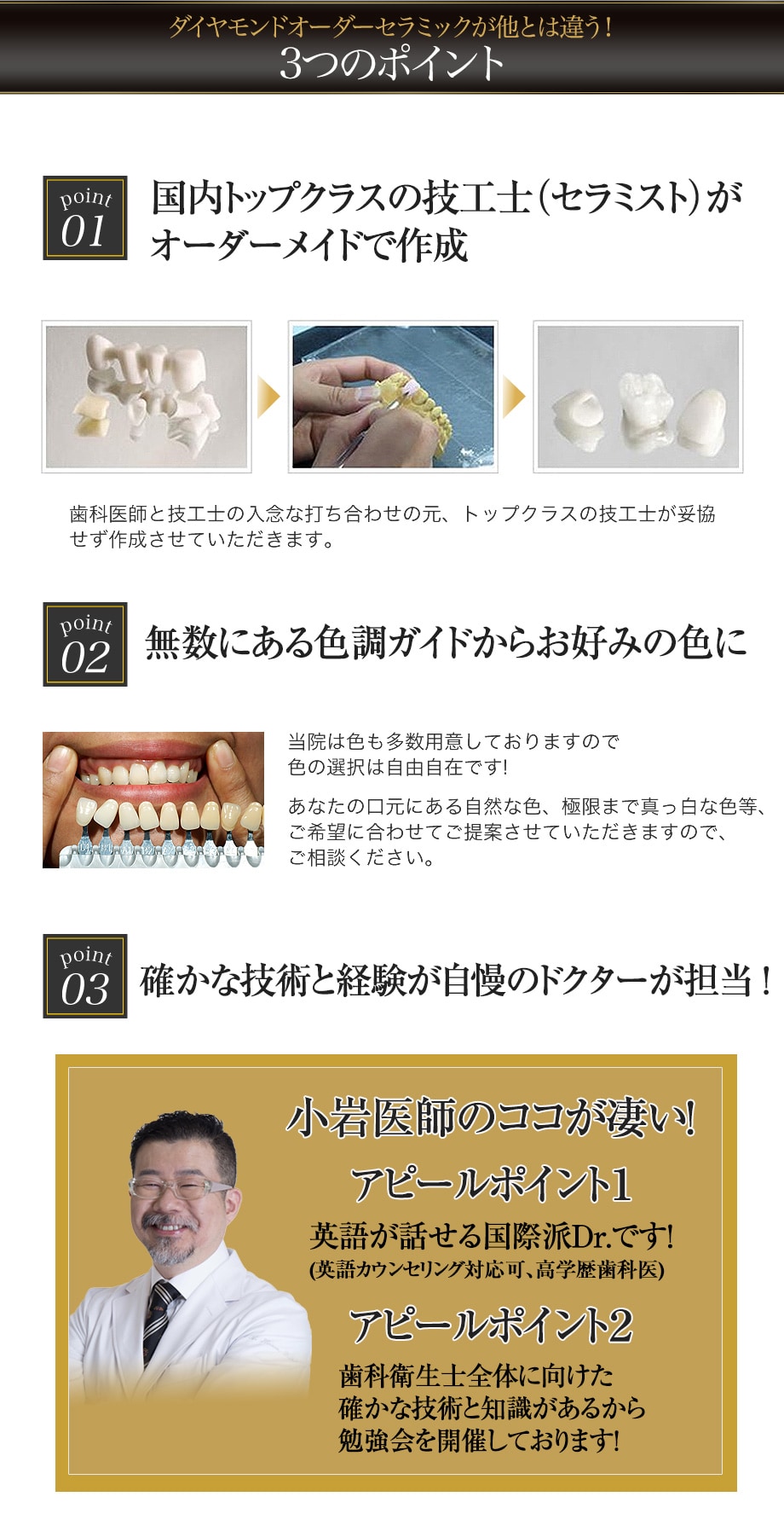 最高品質のセラミックを、歯科医歴20年以上の小岩医師と美的センス抜群の加瀬医師が、確かな経験と知識で歯並びを整えます!