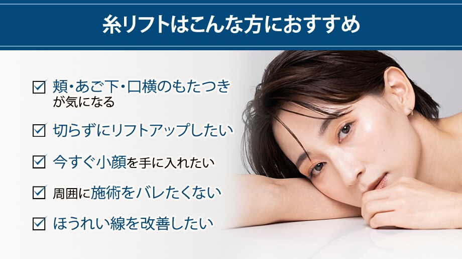 糸を挿入し皮膚に刺激を与えることでコラーゲンが増生されるため肌のハリ・ツヤアップも期待できます。