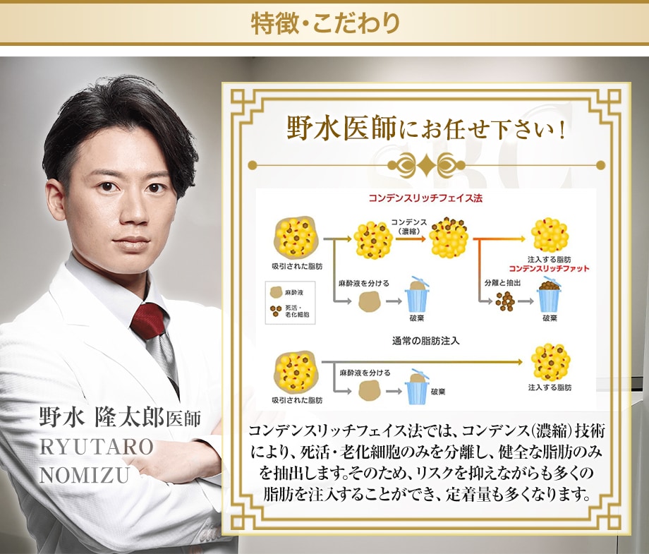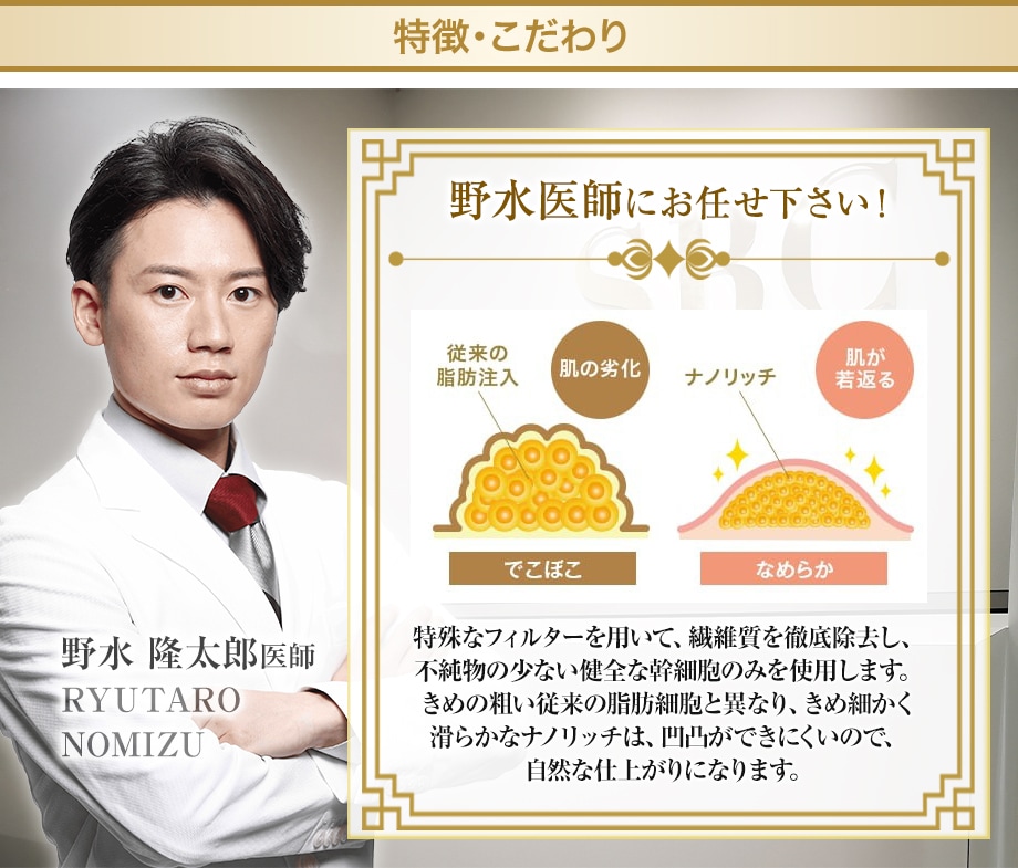 ナノリッチは、コンデンスリッチフェイスをさらに研ぎ澄まし、ナノ化した脂肪注入の方法です。