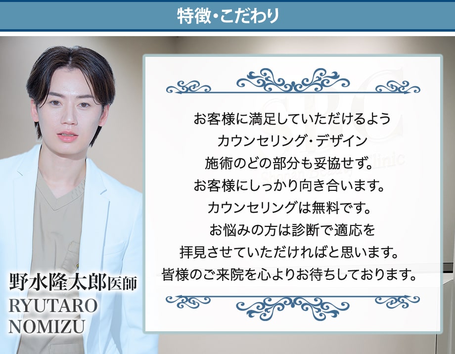 カウンセリングでは、野水医師がお客様のお悩みやご要望をしっかりと伺い、
