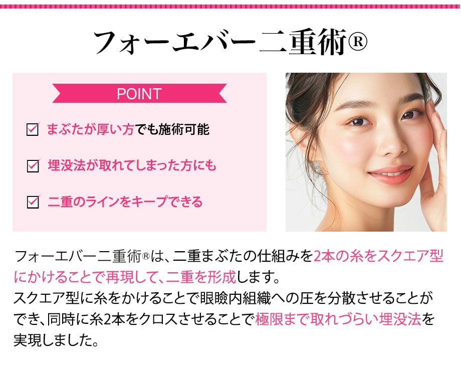 | フォーエバー二重術(R)(両目(笑気麻酔込)) | 98,000円 |