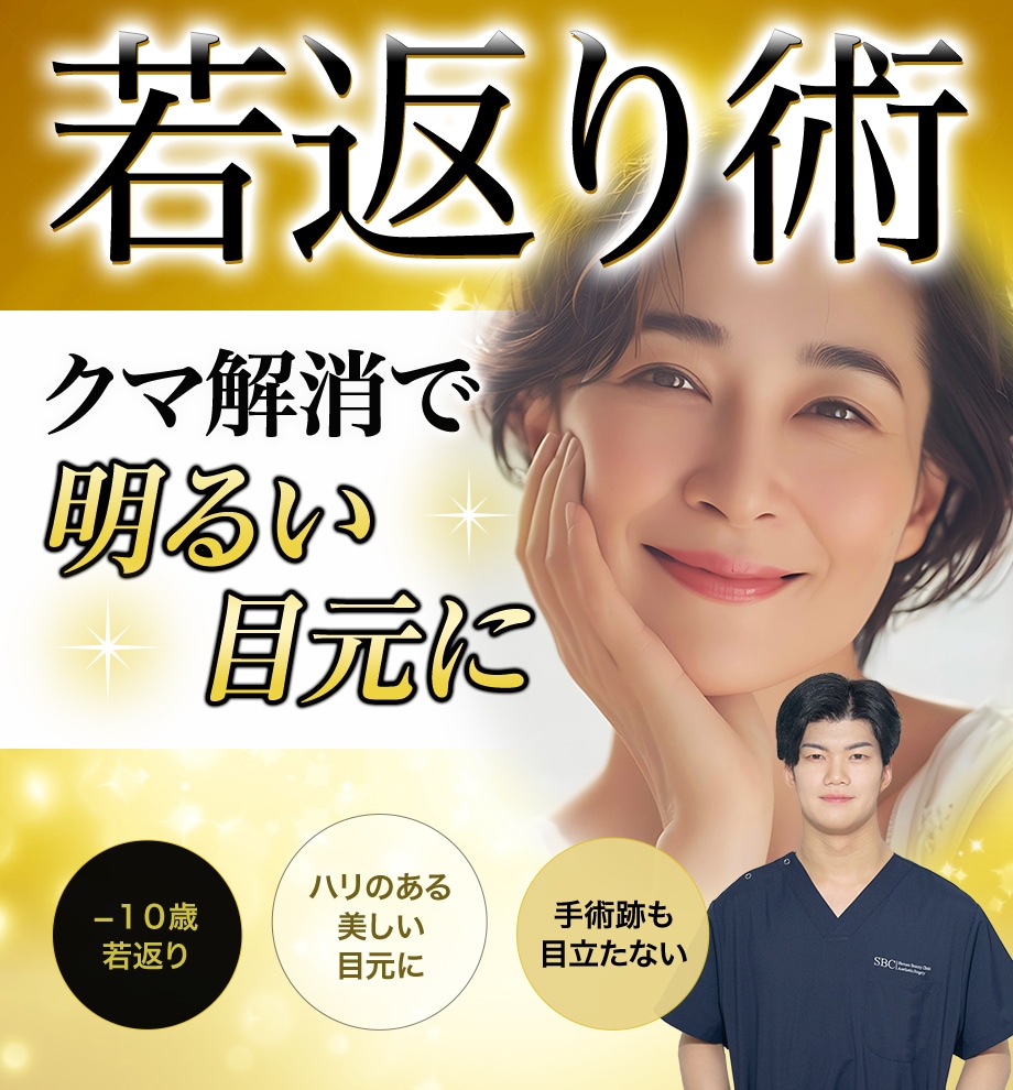 クマが解消することでお顔全体の印象が明るくなり、見た目も若返ります。