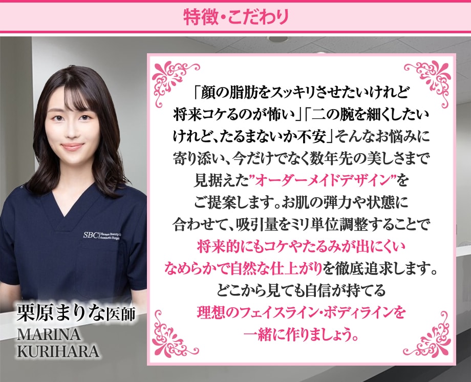 二の腕や肩の脂肪が気になる方、太ももや脇の脂肪が気になる方、部分痩せがしたい方、ダウンタイムや傷跡を最小限にしたい方にオススメの施術です。