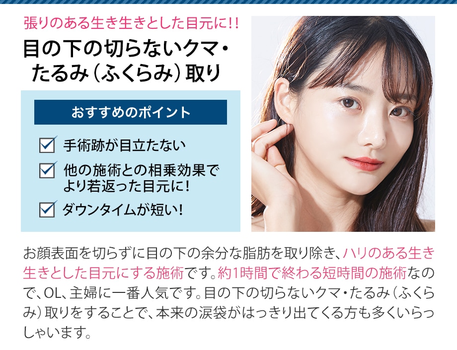 目の下のクマ「ゴルゴライン」・「ほうれい線」・「マリオネットライン(口角)」
