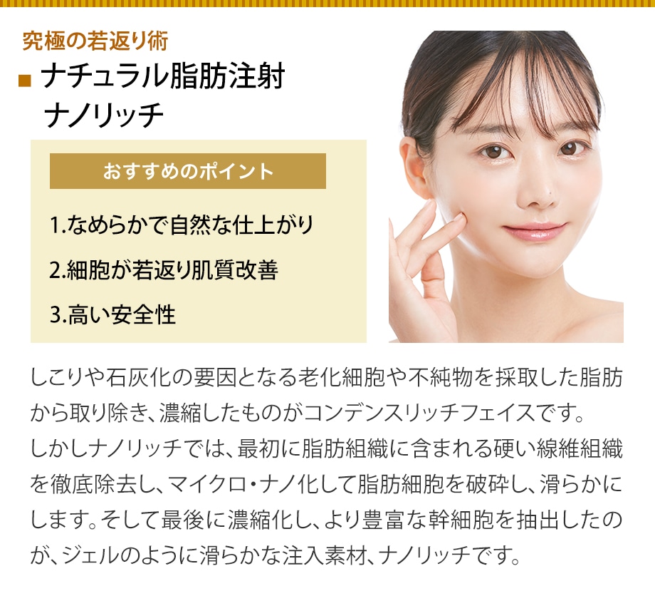 | ナチュラル脂肪注射コンデンスリッチ(法令線) | 57,750円 |
