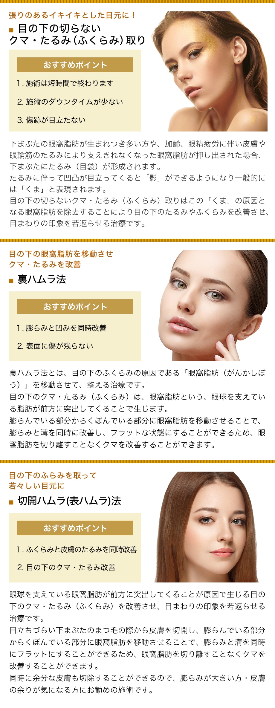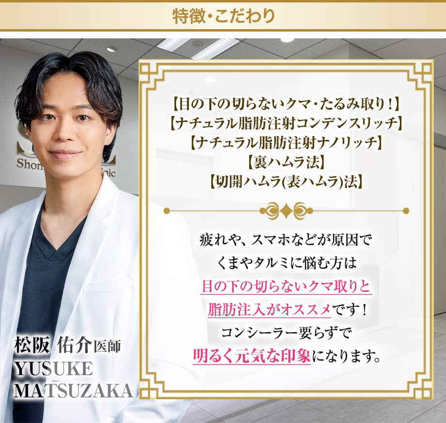 最高難度のクマ治療「切開ハムラ」都内No.1の圧倒的症例数に裏付けられた、確かな技術力であなたのお目元を若返らせます。