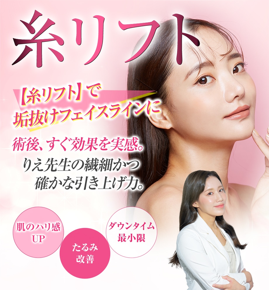 糸リフトはフェイスラインやほうれい線を改善する目的で、溶ける糸を挿入することで、リフトアップする施術です。