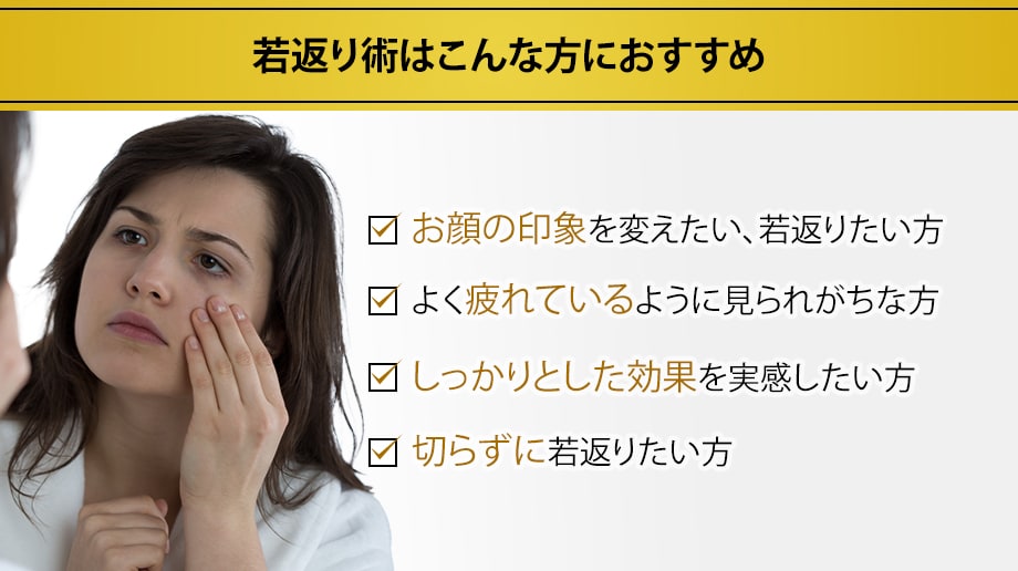 その他にも、お顔表面を切らなくても若返ることの出来る、様々な治療法があります。