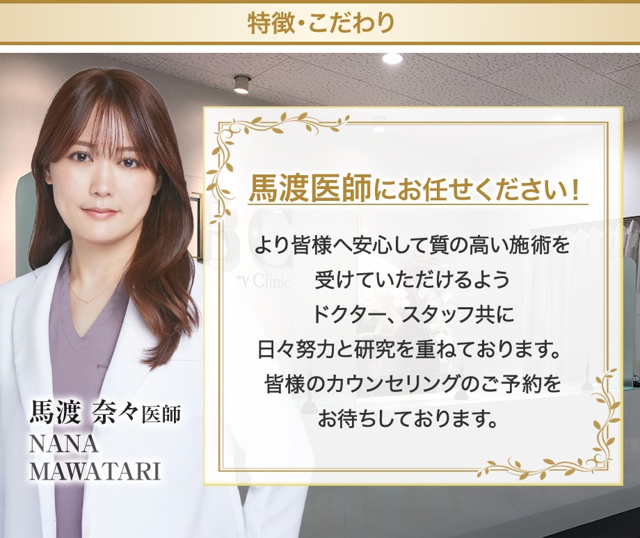 しかし、モントゴメリー腺が発達しすぎて必要以上に大きくなってしまうことがあります。当院では、モントゴメリー腺をメスで排除し、極細の糸で丁寧に縫合いたします。そのため傷痕をほとんど残すことなくきれいなバストを保つことが出来ます。
