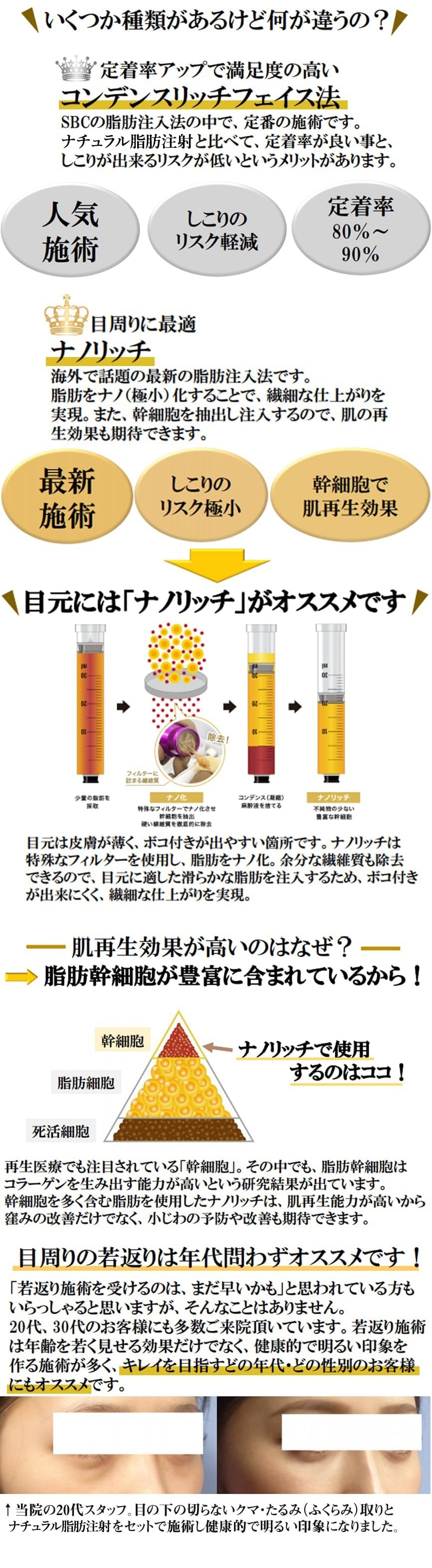 | ナチュラル脂肪注射コンデンスリッチ(★目の下~ゴルゴ) | 103,900円 |