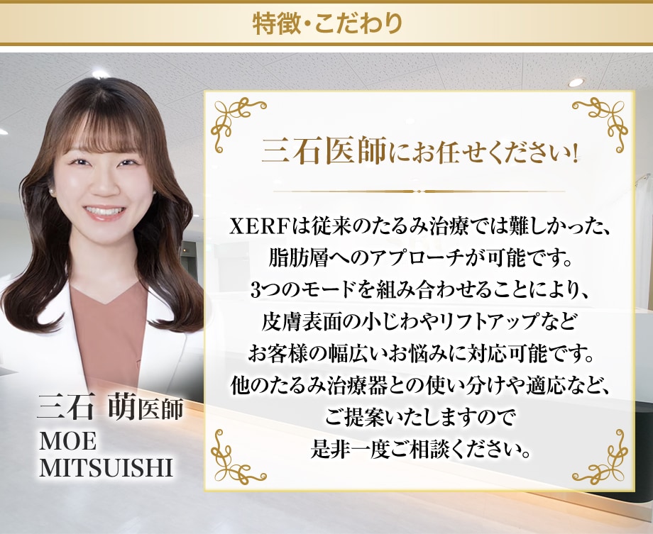 従来の6.78MHzに2MHzを合わせることで脂肪深部まで熱エネルギーを伝えられ深層の引き締めから真皮のタイトニングが可能です。