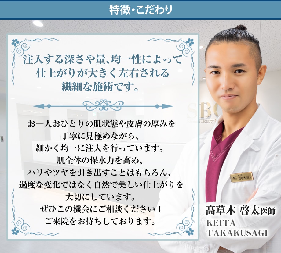 繊細な注入技術で自然な若返りを目指す*髙草木院長にお任せください!