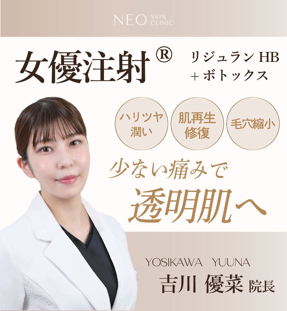 組織再生作用・抗炎症作用のある【リジュラン】と、真皮内に注入することで毛穴縮小や肌質改善効果のある【ボトックス】を掛け合わせたSBCオリジナル注射です。