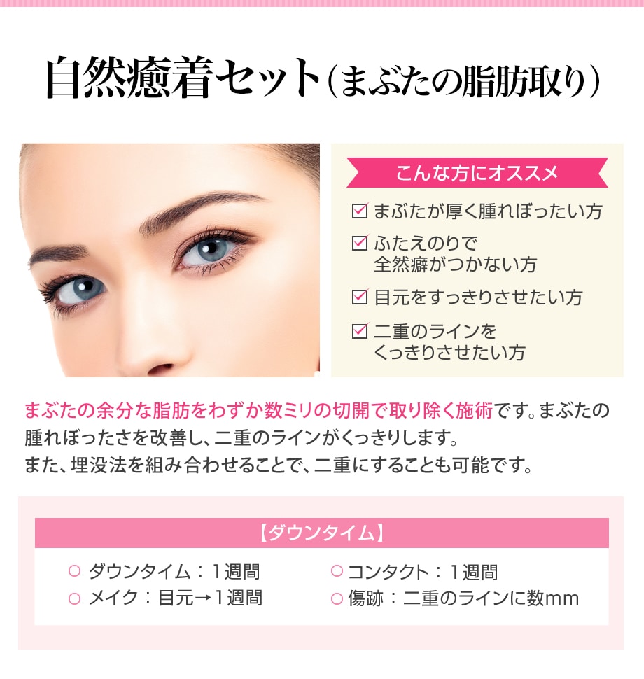 | 自然癒着セット(まぶたの脂肪取り) | 38,680円 |
