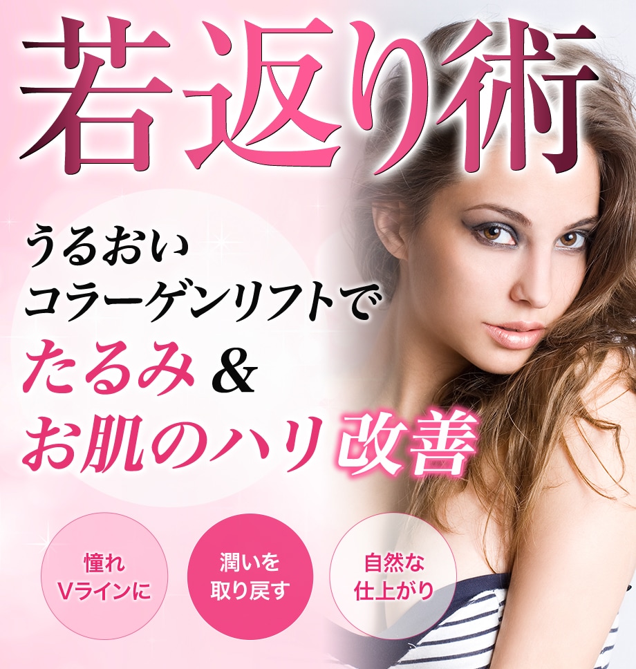 うるおいコラーゲンリフト(ショッピングスレッドリフト)は施術後のダウンタイムや痛みが少なく、引き締め効果・肌のうるおい、つやを体感できる、今もっとも注目される最新のアンチエイジング治療です。