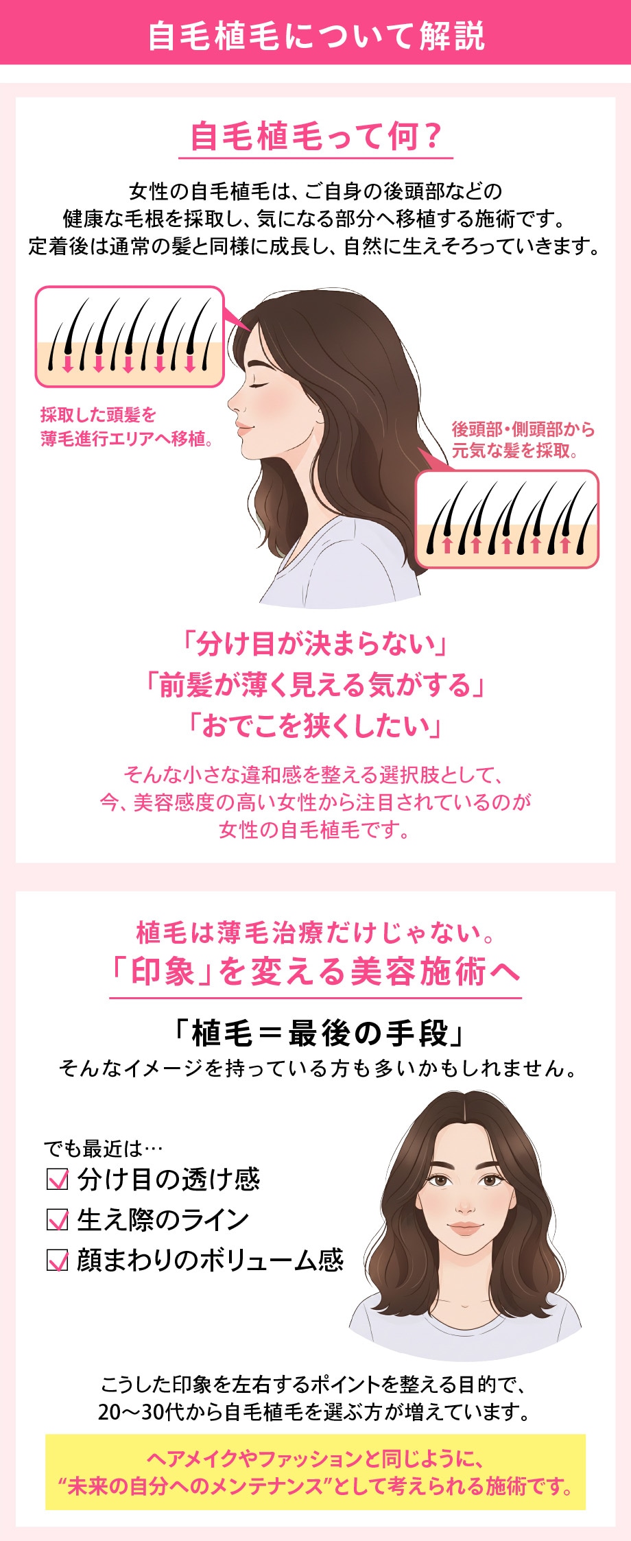 薄毛治療としても、美容目的でも、今大注目の女性植毛です。