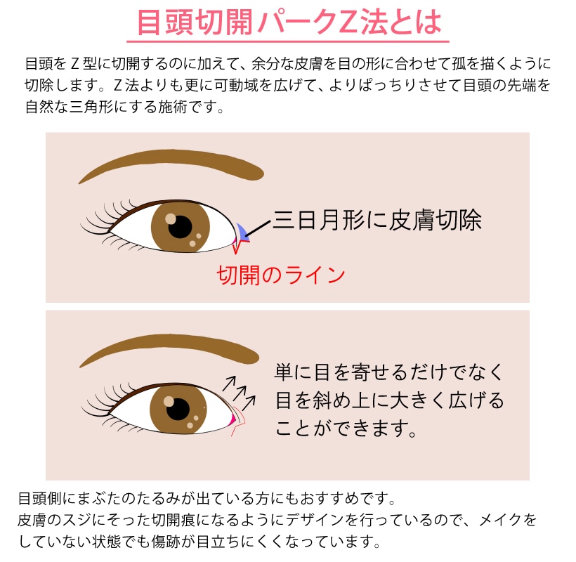 ・クイックコスメティーク・ダブルNeoハイブリッド法・目頭切開パークZ法・SBCデカ目術