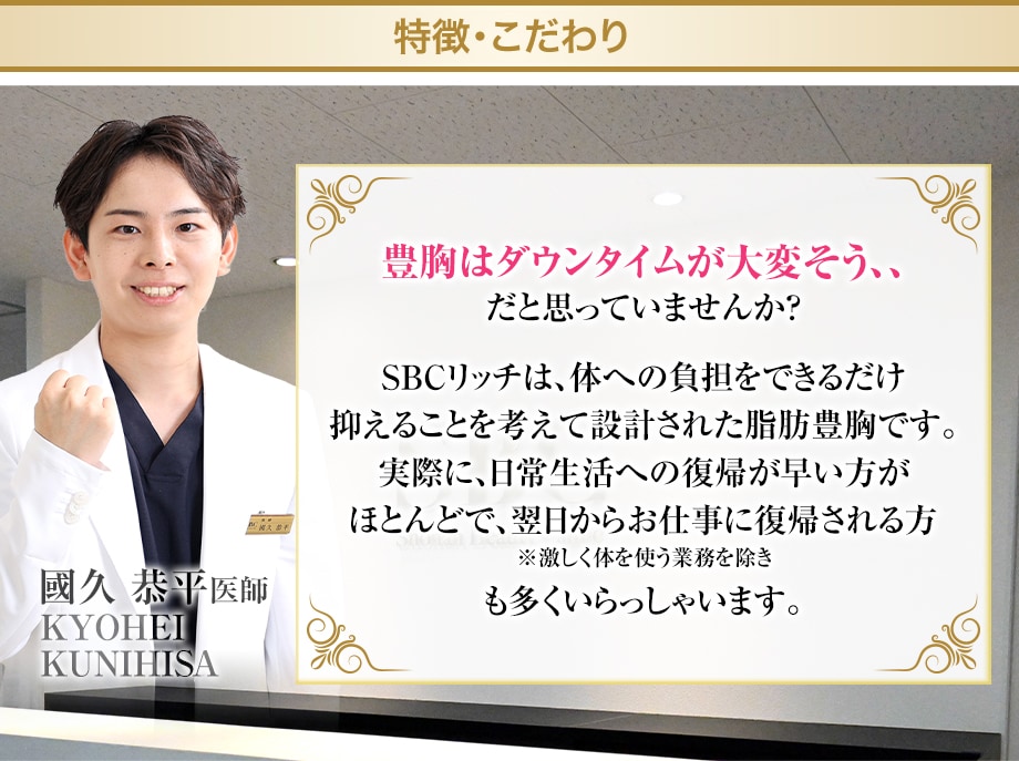 SBCリッチ豊胸は、これまでの脂肪豊胸をもっとわかりやすく、もっと選びやすくという信念の元に生まれました。