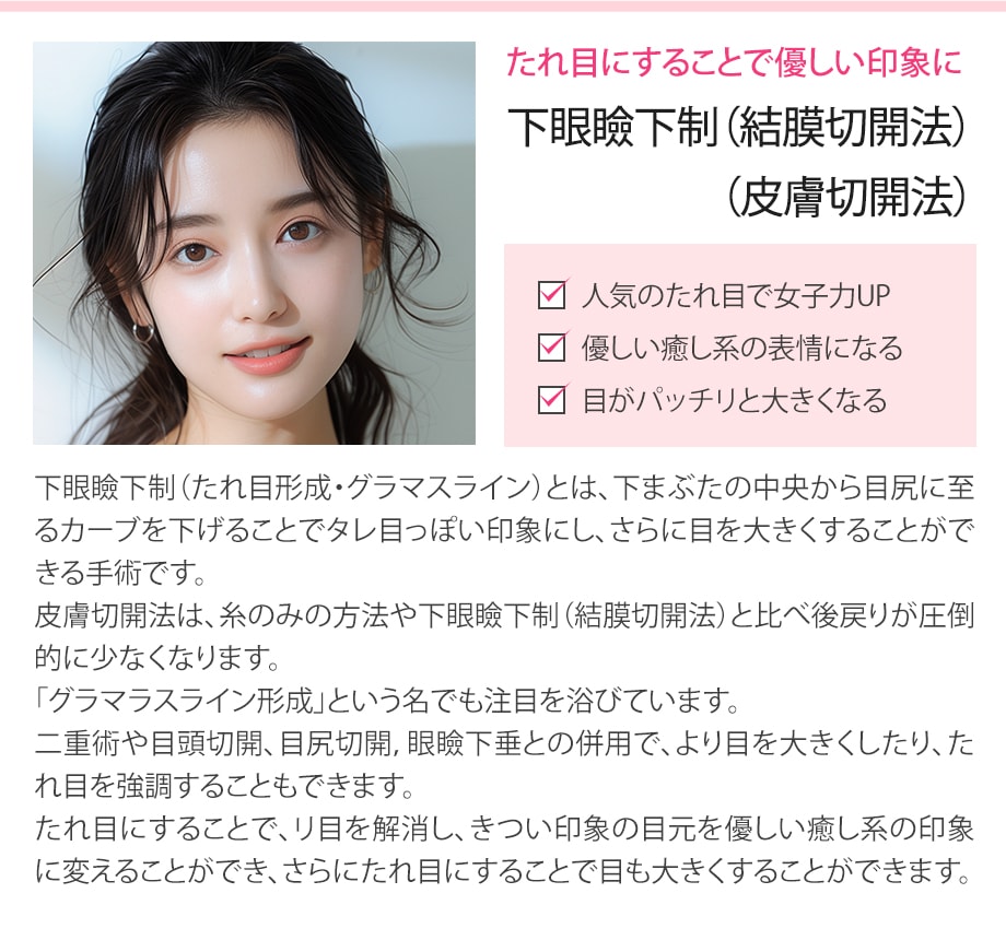 | 下眼瞼下制法(切るたれ目術)(皮膚切開法 両目) | 248,100円 |