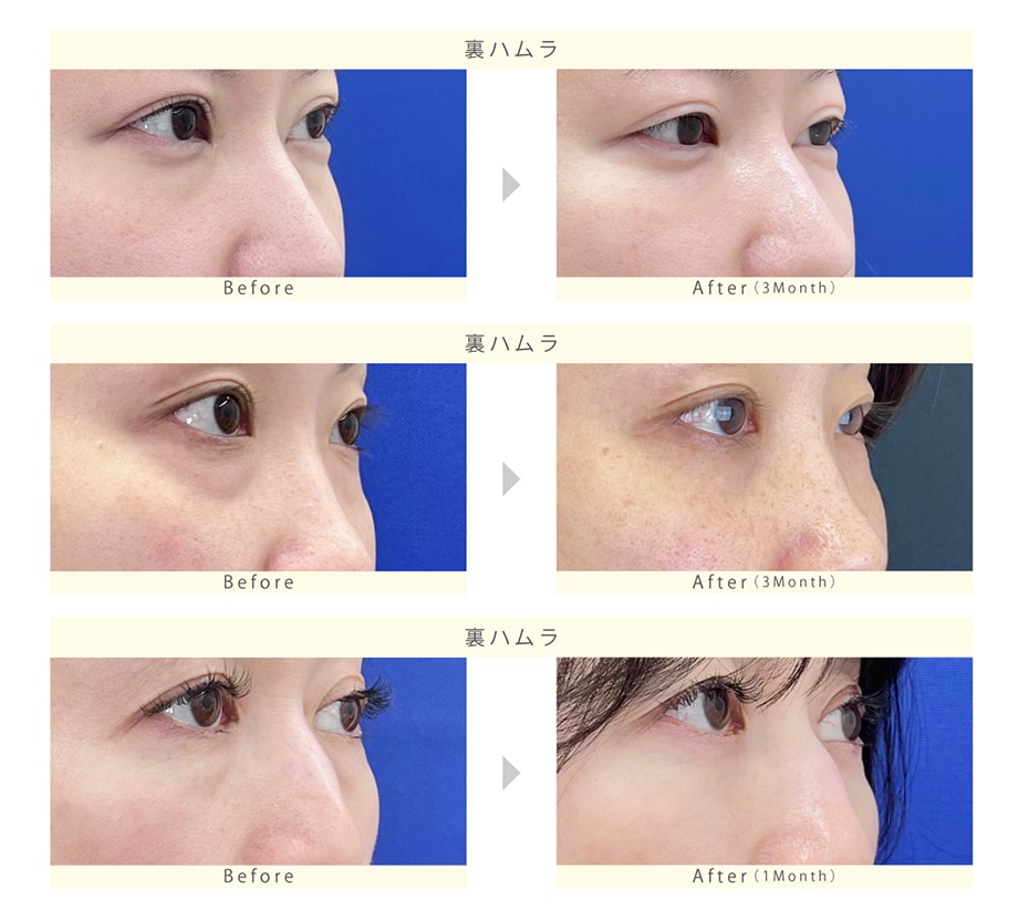 下瞼を支える力が弱い人には、眼輪筋の引き上げ固定や、緩んだ下瞼の短縮手術などが必要です(追加には別途料金がかかります)。