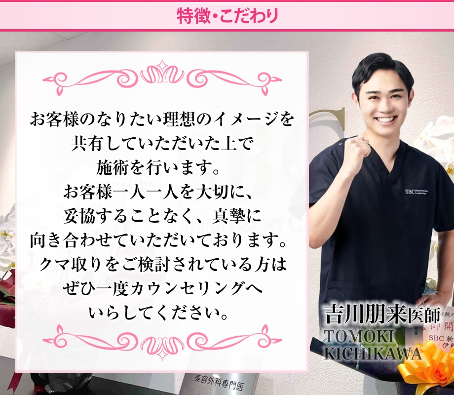 吉川医師は親しみやすく、丁寧なカウンセリングを行いますので、美容クリニックが初めての方も安心してご相談ください。