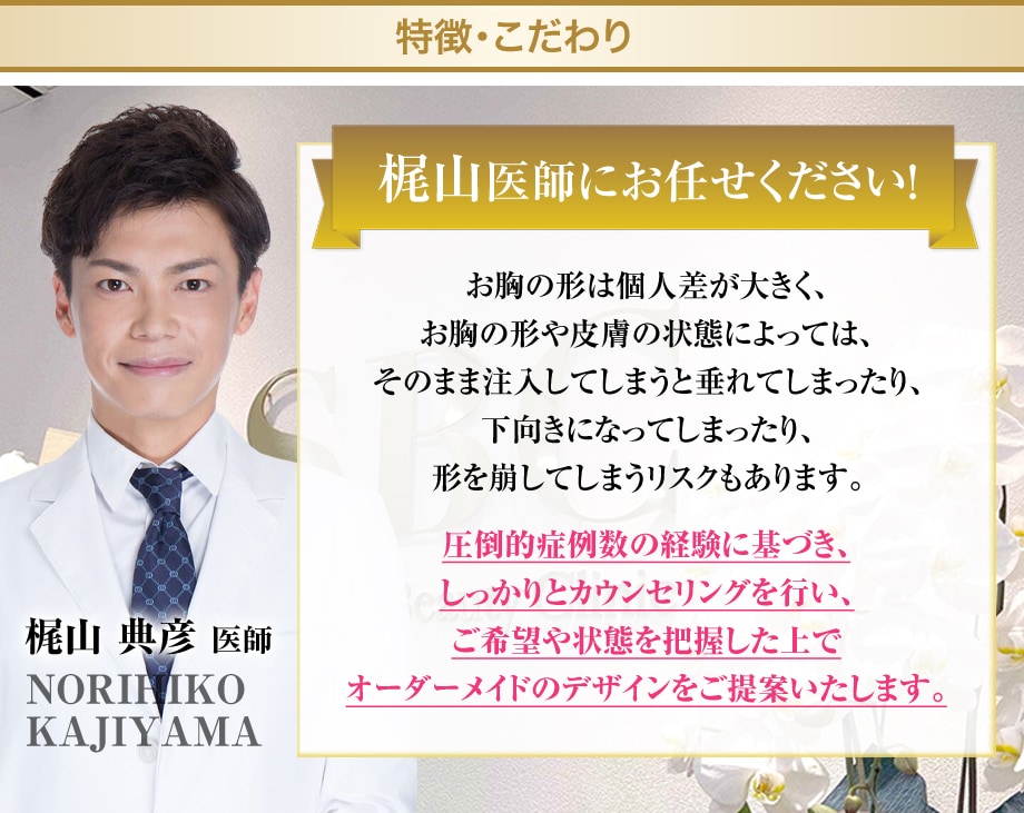 豊富な症例数に基づき、お胸の悩みに応じたオーダーメイドデザインをいたします。