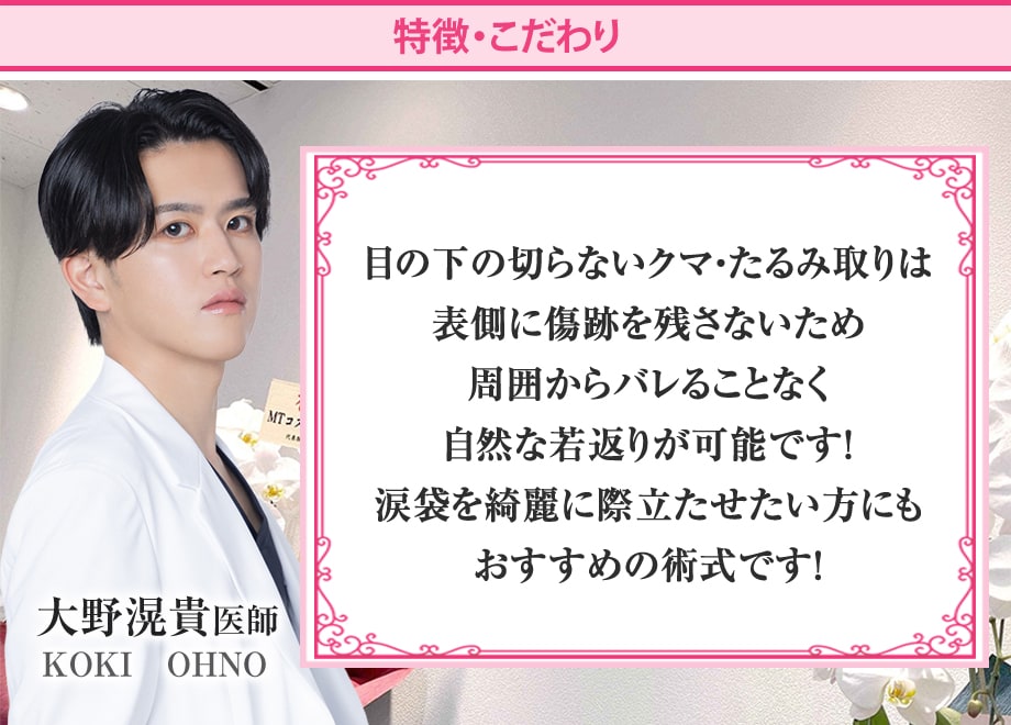 目の下の切らないクマ・たるみ取りは表側に傷跡を残さずに、