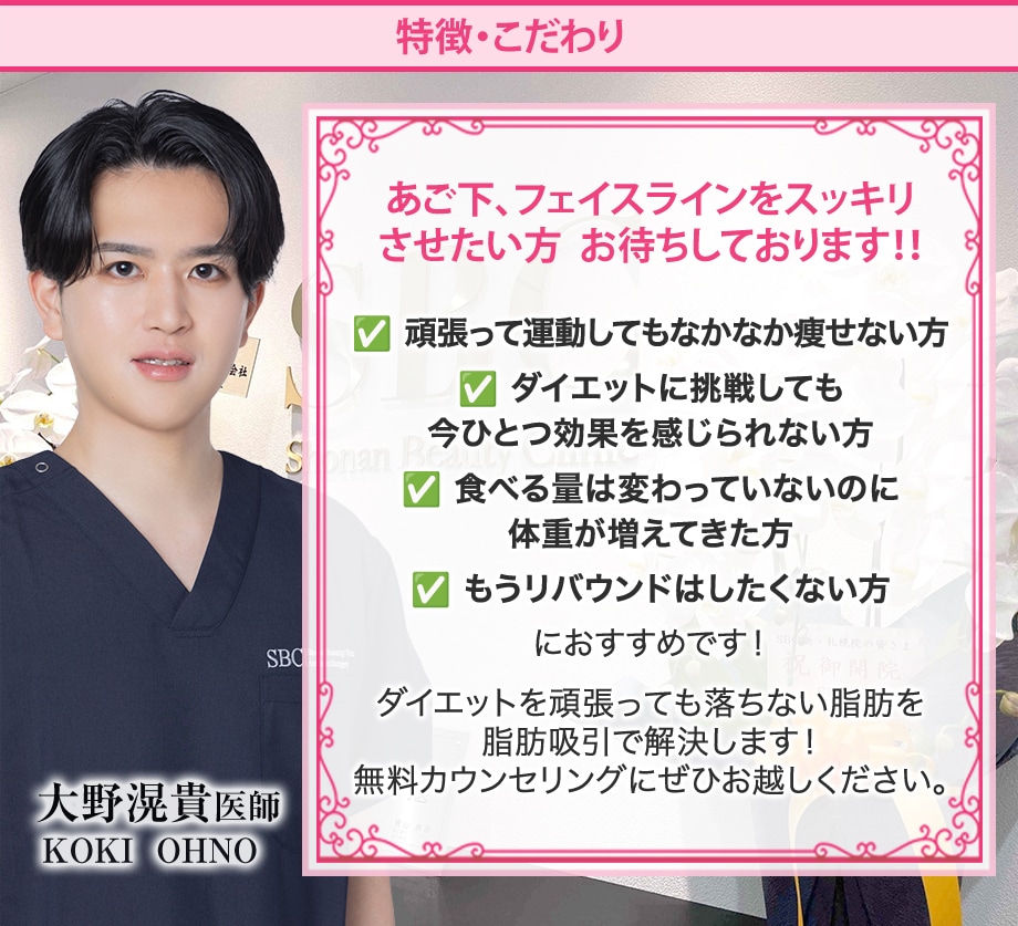 お値段以上と大人気の美ボディ脂肪吸引のモニター様募集中です。