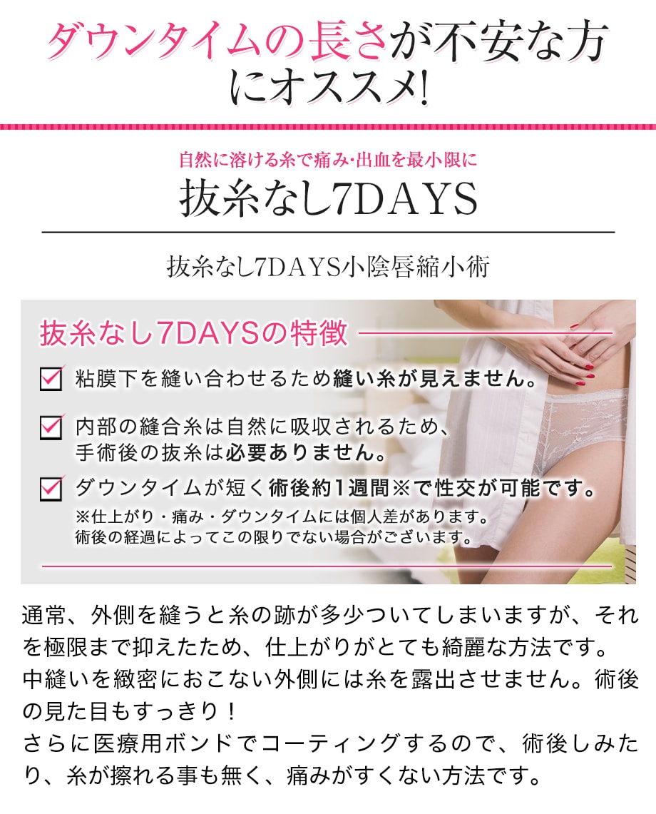 | 抜糸なし7DAYS(小陰唇縮小)(片側) | 115,500円 |
