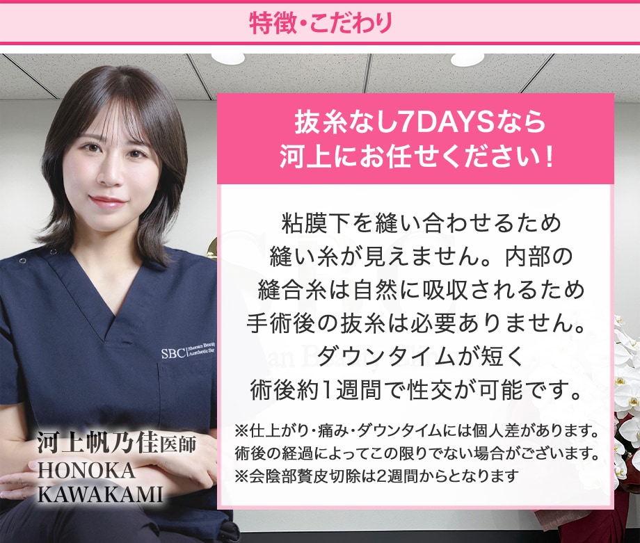 河上医師による抜糸なし7DAYS(小陰唇縮小)のモニター様を絶賛募集中です!