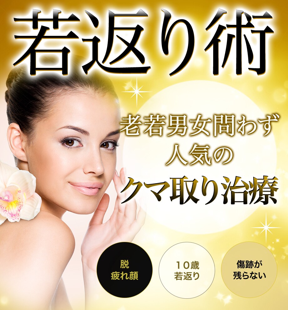 老け見えの原因となる目の下のクマ・たるみ・膨らみを取り、目まわりの印象を明るく若返らせる治療です。