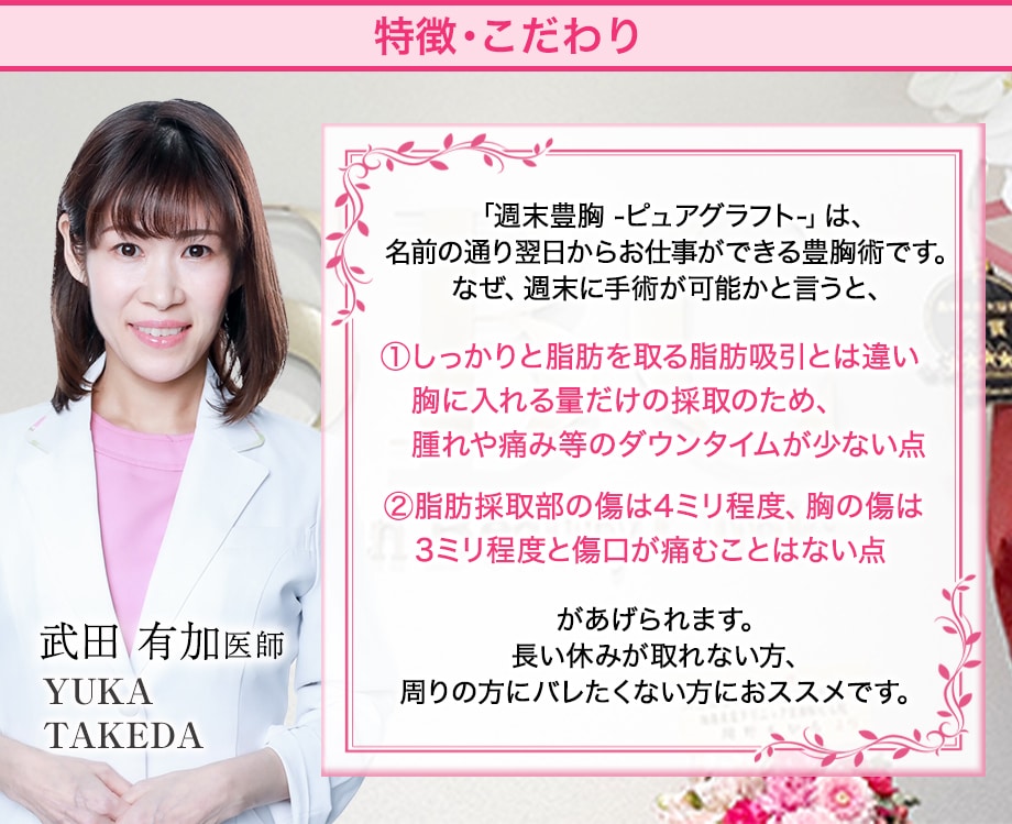 それを注射でバストに注入するため、定着率が高くしこりリスクが低い施術が可能となり、確実な部分痩せと一生もののお胸が作り出せます。