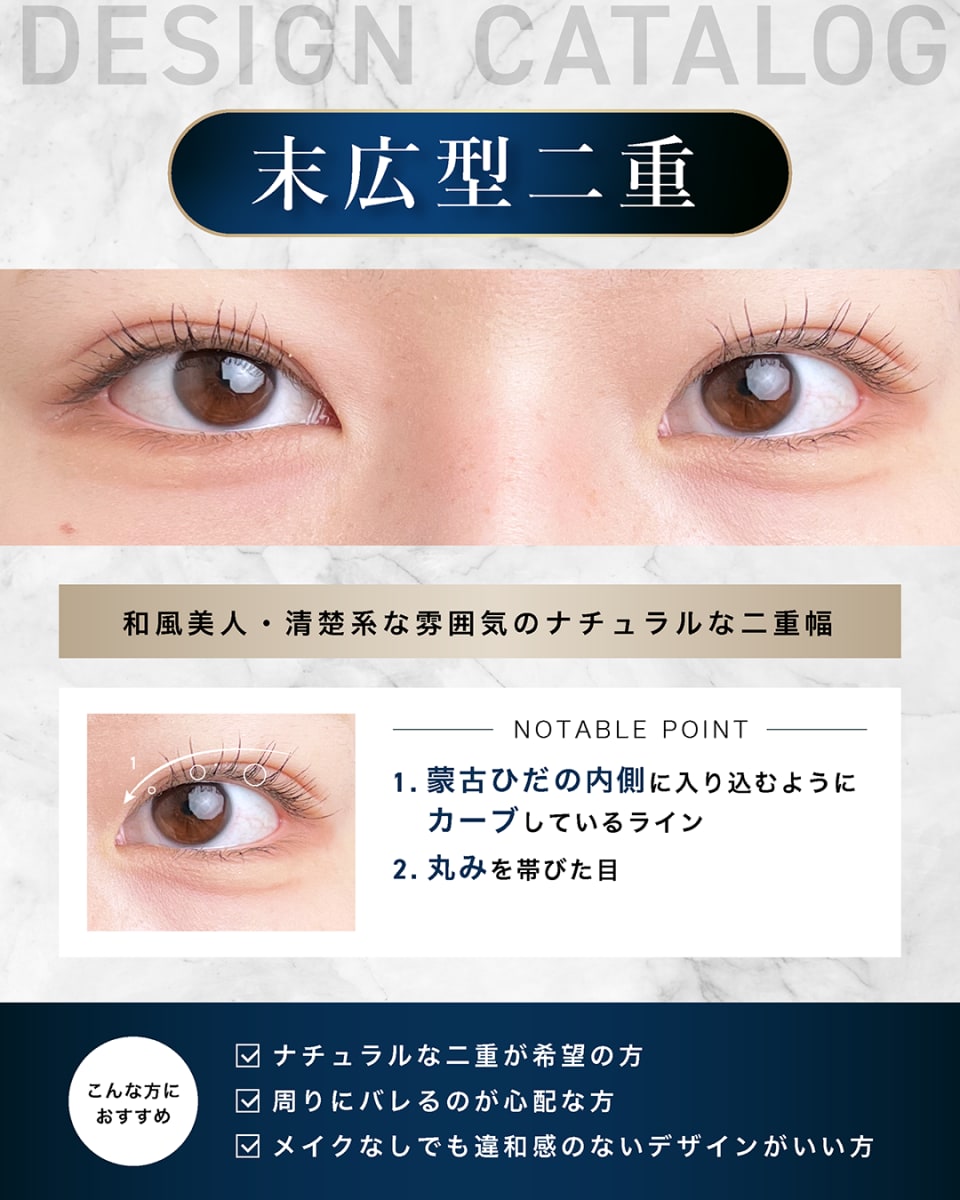 蒙古ひだが張っている方、離れ目が気になる方、強固な二重ラインがほしい方などにおすすめです。