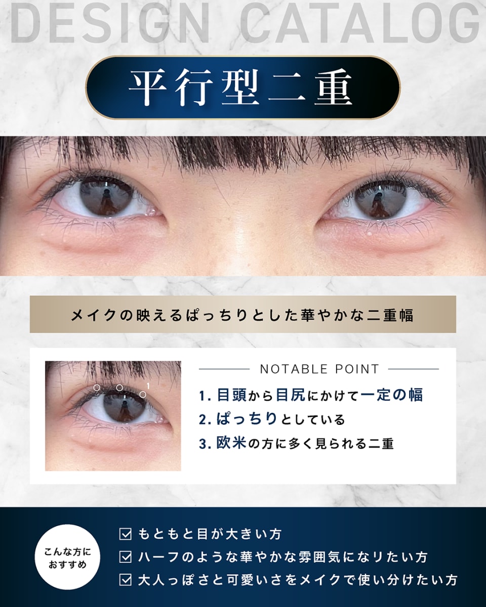 埋没法よりも持続性があり、基本的には半永久的な二重が手に入ります。平行型二重や幅の広い二重を希望する方におすすめです。