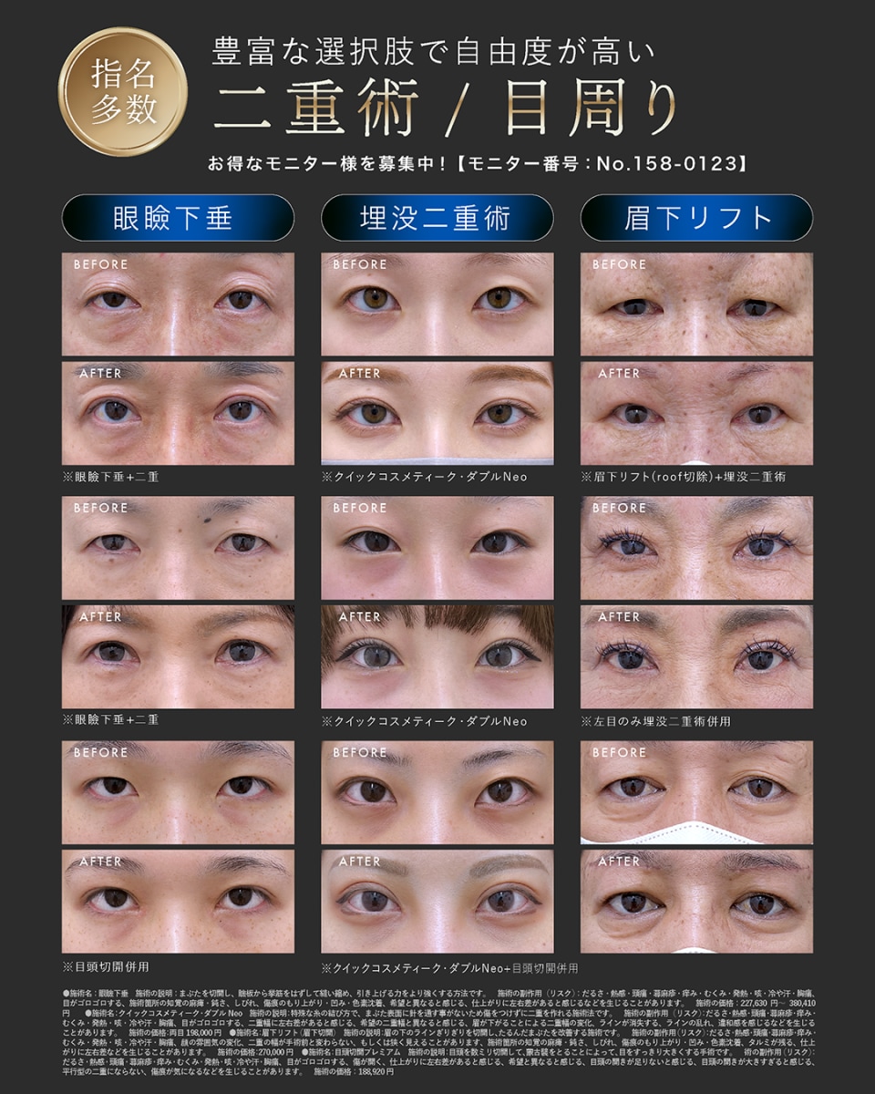 | フォーエバー二重術(R)(両目(笑気麻酔込)) | 98,000円 |