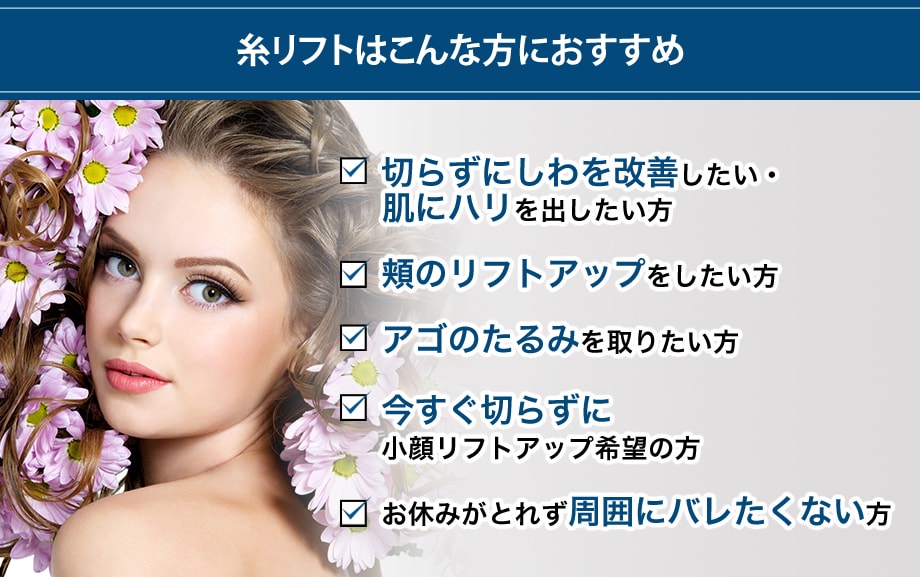 切らない施術なので「バレない」「ダウンタイムが短い」「術後すぐ化粧が可能」「痛みが少ない」など
