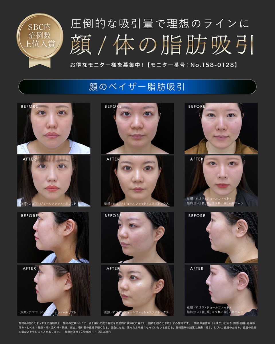 | 根こそぎVASER脂肪吸引(ホホ+アゴ下) | 205,320円 |